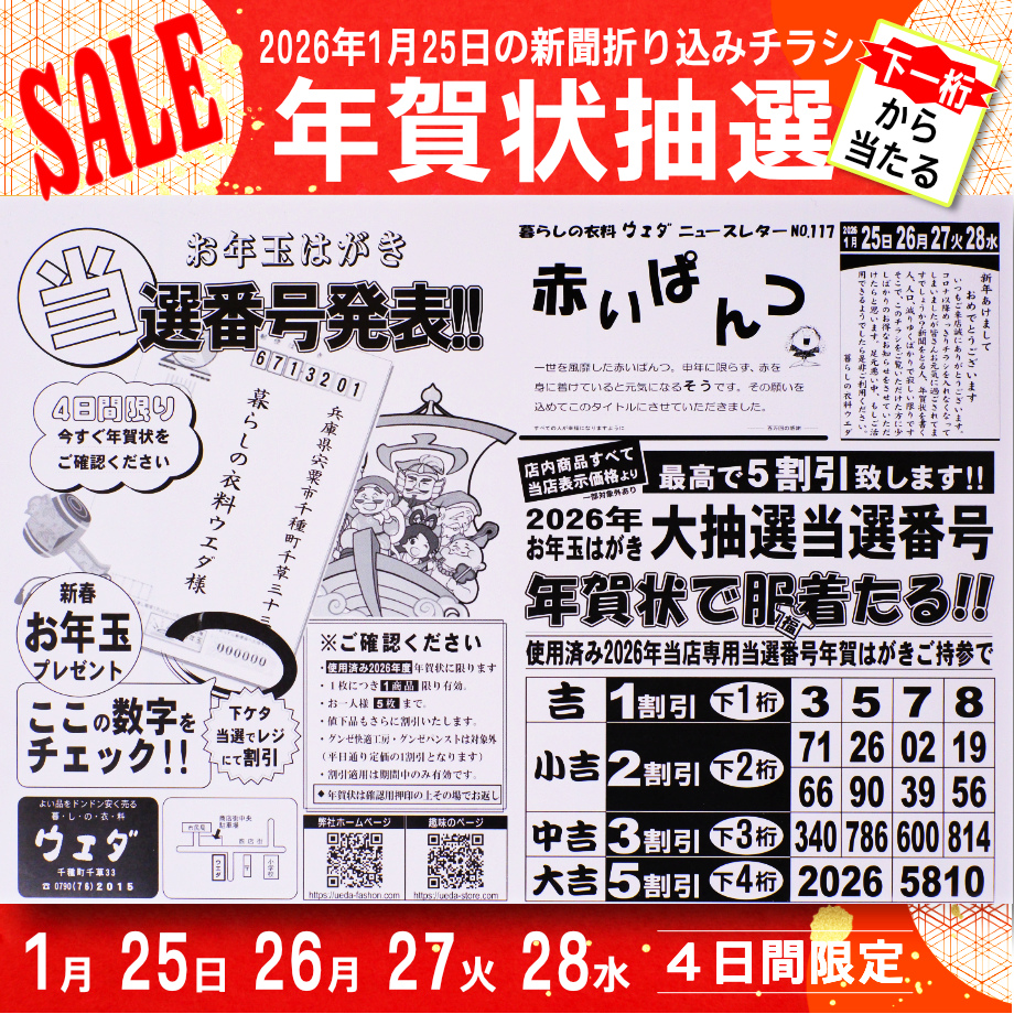 2026年1月25日 年賀はがき抽選セール 下一桁から当たります!!