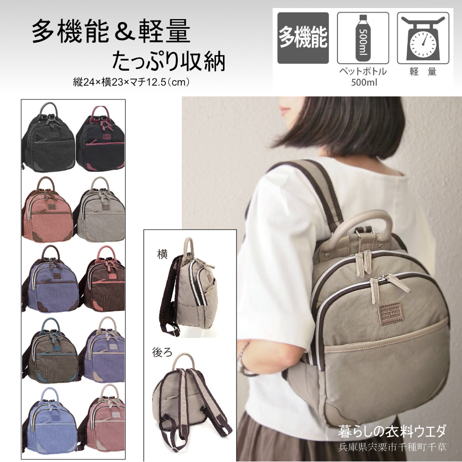 - ¥2,750(税込¥3,025) 【レディース】ちょっと小ぶり軽量多収納ナイロンワッシャーリュック