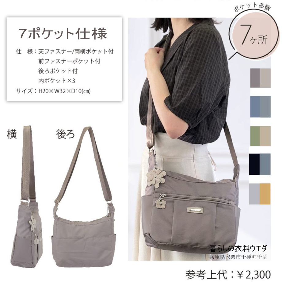 - ¥1,900(税込¥2,090) 【レディース】多機能軽量ワッシャーナイロンショルダーバック